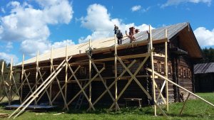 В августе начался основной этап работ по реставрации тесовой кровли Дома Н.М. Юрова из деревни Криуля Тарногского района. Проведению данных работ предшествовал значительный подготовительный этап: закупка материала, механическая обработка теса – устройство дорожек, антисептирование древесины, устройство неинвентарных лесов. Сейчас работы идут полным ходом.