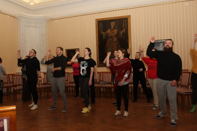 Особое место в программе Школы занимают практические занятия. Для многих из откликнувшихся к участию в проекте опыт по постижению основ актёрского мастерства стал первым и желанным. Актриса, режиссёр молодёжного театра-студии "Сонет" Ольга Бороздина провела первые групповые тренинги, которые способствовали не только развитию памяти, правильному дыханию, но и большему сближению и сплочению собравшихся.