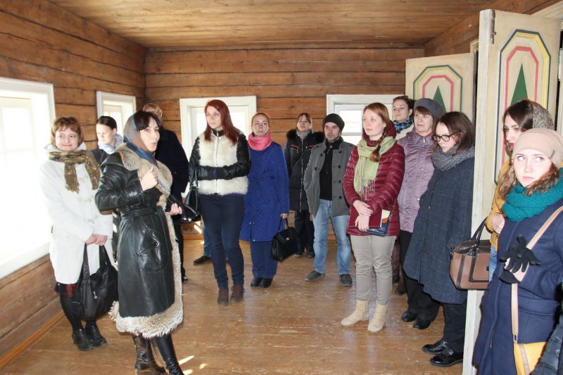Для многих, из приехавших на методическую учёбу, это было первое знакомство с музеем «Семёнково». Наталья Киршина поведала о единственном на территории Вологодской области музее под открытым небом, истории его формирования, проблемах развития и ближайших перспективных планах. Особое внимание было заострено на результатах проекта «Строим вместе!» - прекрасном примере взаимодействия с бизнесом, итогом которого стала спасённая ветряная мельница из деревни Борок Тотемского района и строящаяся поблизости от неё ещё одна аэродинамическая конструкция. Гости посетили «Общественную квартиру», посидели за партами в «Сельской школе». Не обошли вниманием и дом Копылова из деревни Коростелёво.