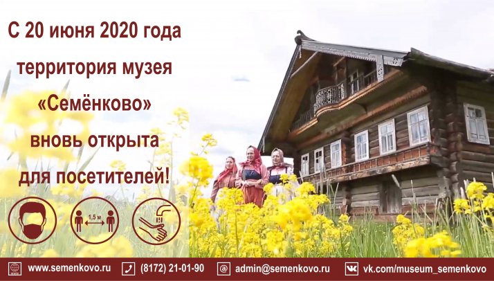 С 20 июня 2020 года территория Архитектурно-этнографического музея «Семёнково» вновь открыта для посетителей!