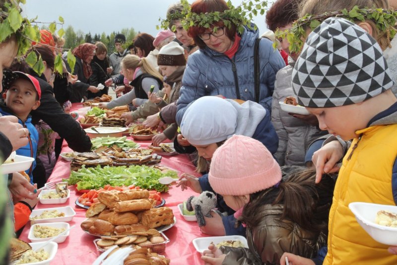 А пока молодежка хороводы водила, хозяюшки на братчину столы накрыли. Забот у каждой было вдоволь: кто яйца красил, кто картошку варил, блины пек, квас готовил, самовар ставил. А были и такие, кто из городу гостинца послали: пирогов да хлеба (ОАО «Славянский хлеб»), молока да творога, маслица да сметанки (ОАО «УОМЗ «ВГМХА»), овощей разных (СХПК Комбинат «Тепличный»).